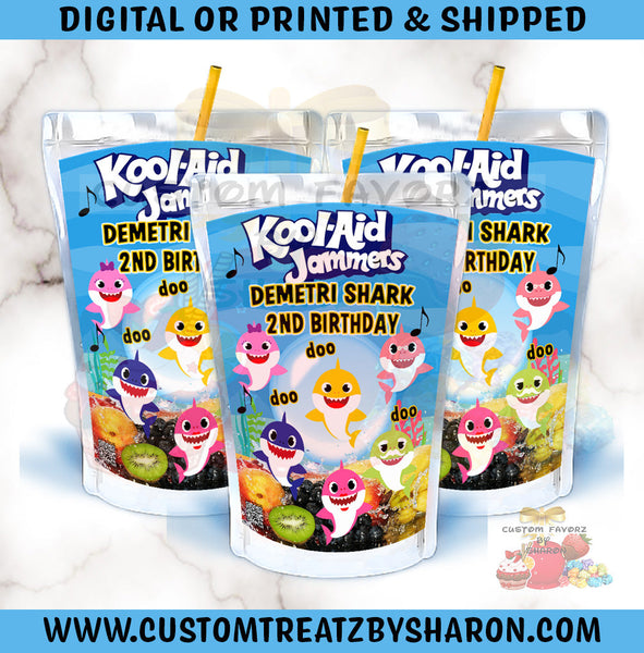 Baby Shark inspired juice pouch. Caprisun and Kool-Aid Jammers Labels and/or Juice. (12)