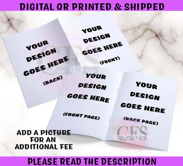 ***If your design requires a photo, please send a message with your JPEG photo attached. Please do not crop or edit your photo before sending. THERE IS AN EXTRA CHARGE OF $5 TO ADD PICTURE