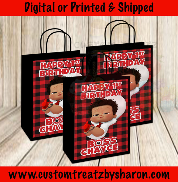 Boss Baby Inspired Customized Gift Bags and Labels. These bags can be filled with chips, cookies, popcorn, candy, toys, and more!