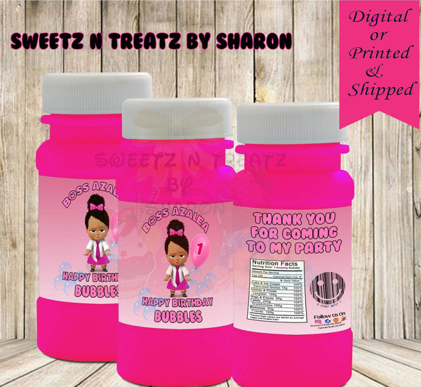 Boss Baby Girl Party Bubble Labels