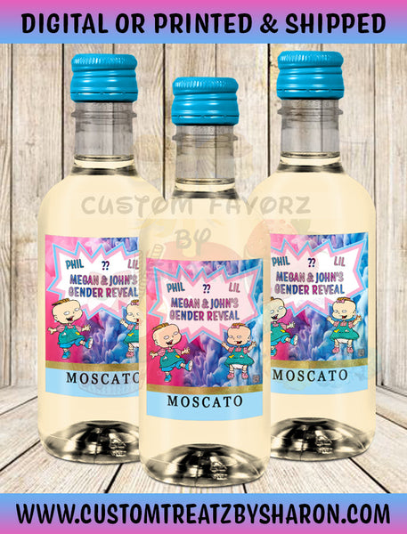 Phil & Lil Mini Wine Label | Twin Rugrats Phil N Lil Favor | Gender Reveal | Rugrats Wine Label | Mini Champagne Labels