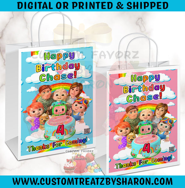 Caucasian Cocomelon Gift Bags and Labels.